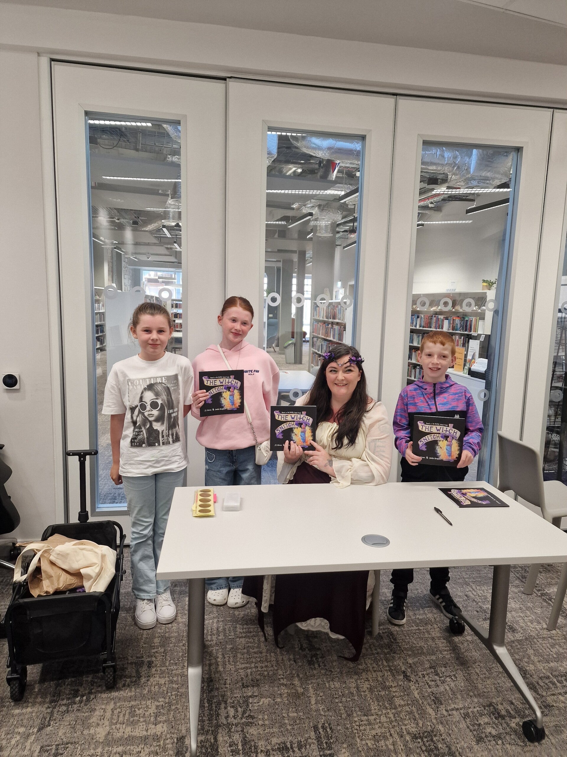 J.L signing copies of The Witch & the Snitch at Paisley Central Library